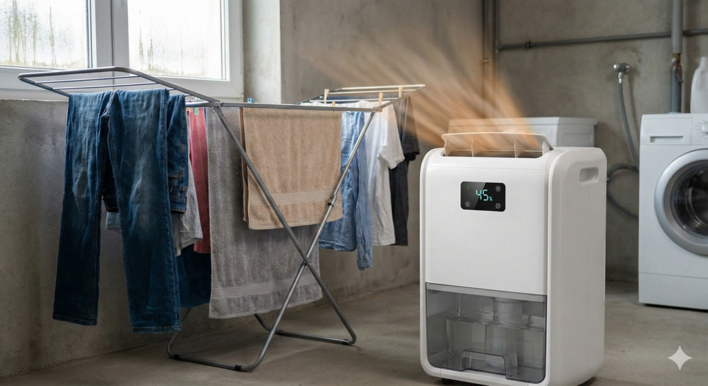 Para secar la ropa en tiempo récord (y no tenerla 2 días oliendo a humedad), necesitas un deshumidificador con potencia suficiente o, idealmente, con Modo Laundry (Secado de Ropa).